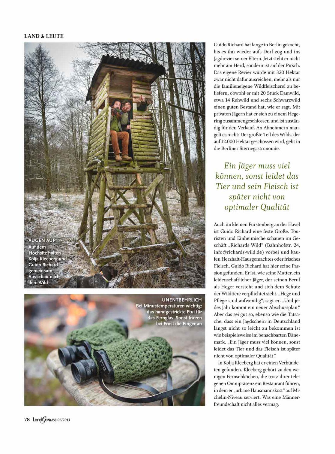 Von der Küche in den Wald Fernsehkoch Kolja Kleeberg hat ein feines Sternerestaurant in Berlin und einen Draht in den Wald. Denn er hat Guido Richard als Freund. Der gelernte Koch und Jäger liefert ihm die besten Böcke der Uckermark.